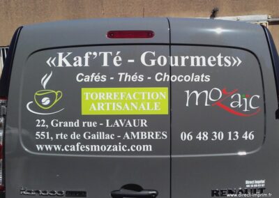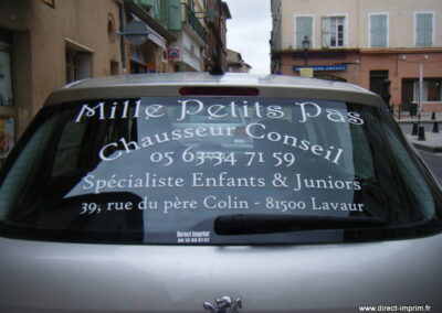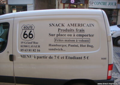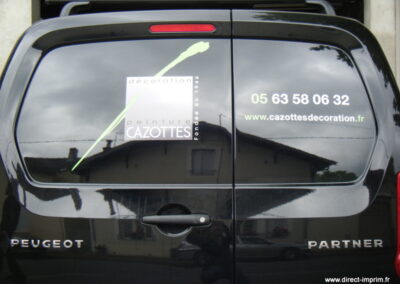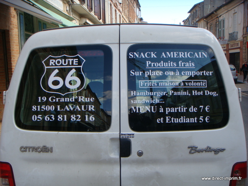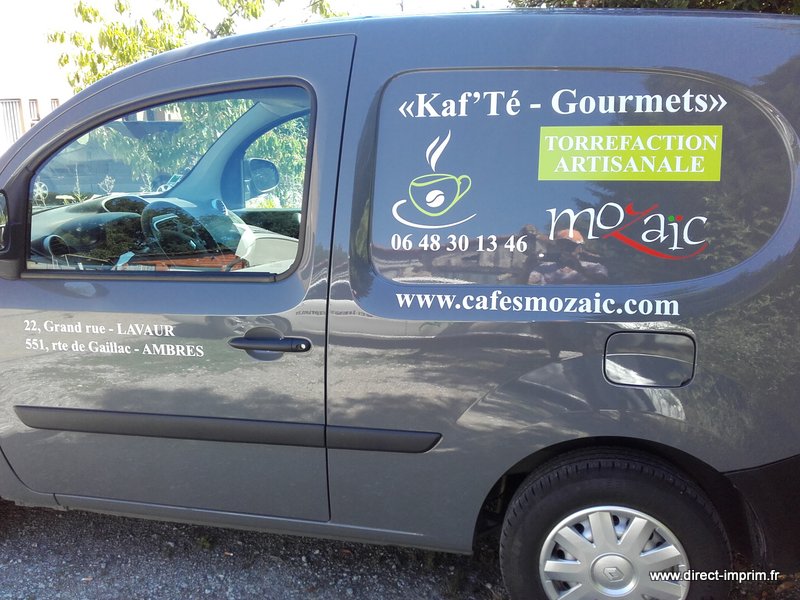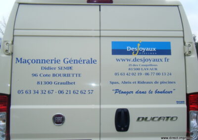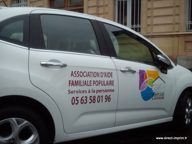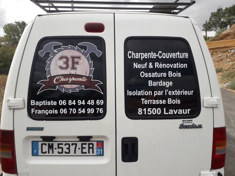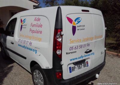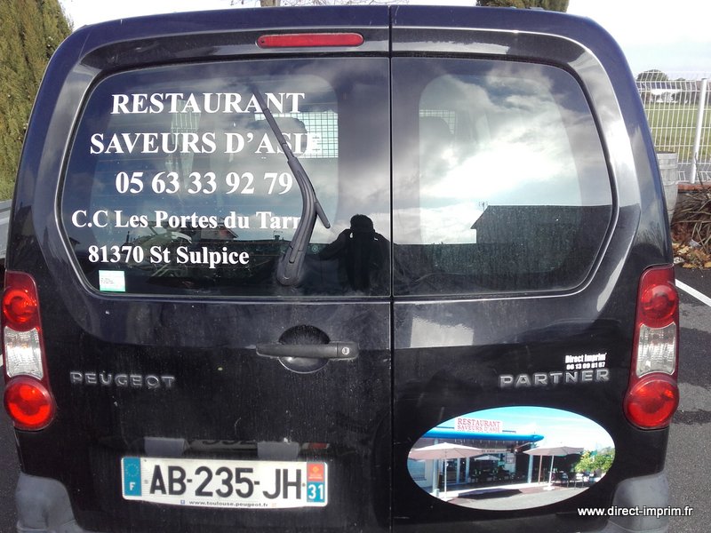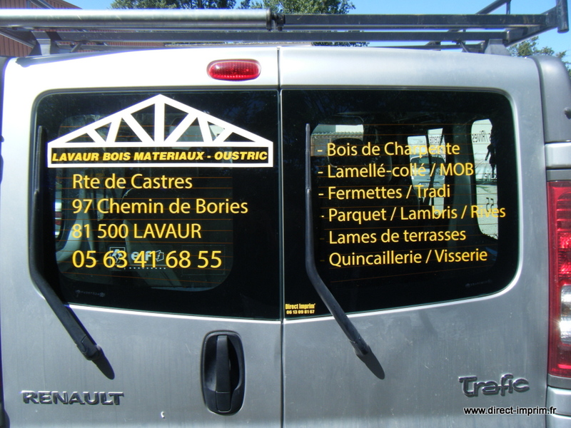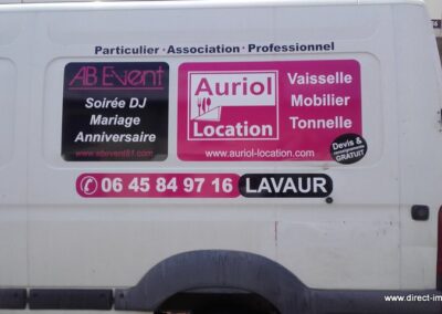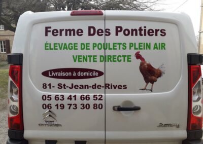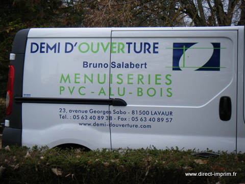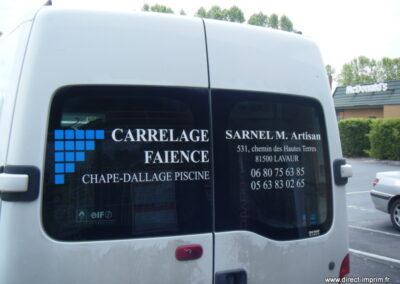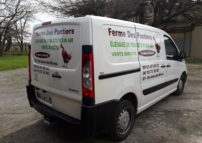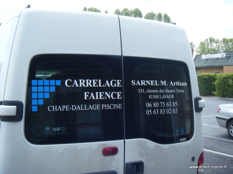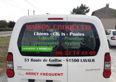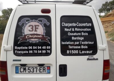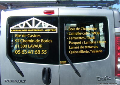 Voici des exemples de stickers de véhicule, réalisés par nos soins, sur le secteur de Lavaur dans le Tarn.